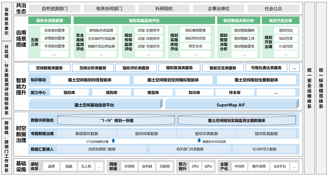 自然资源部基于部本级“一张图”实施监督信息系统开展CSPON建设。一是完善五级三类规划高效审批和在线管理,实现部省实现纵向贯通和数据联动;二是深化多元场景监测评估、推动数据互联“一动皆动”,即围绕空间安全、空间格局、空间效率、空间品质等方面构建规划实施监测评估场景,通过CSPON主题数据库实现系统贯通、数据互联、一动皆动,提升规划实施监测预警的时效性和准确性;三是规划管家赋新能、管理决策增智慧,基于DeepSeek构建了人机交互的规划智能管家,建立智能问答、智能问数能力,提升规划管理智能化水平。